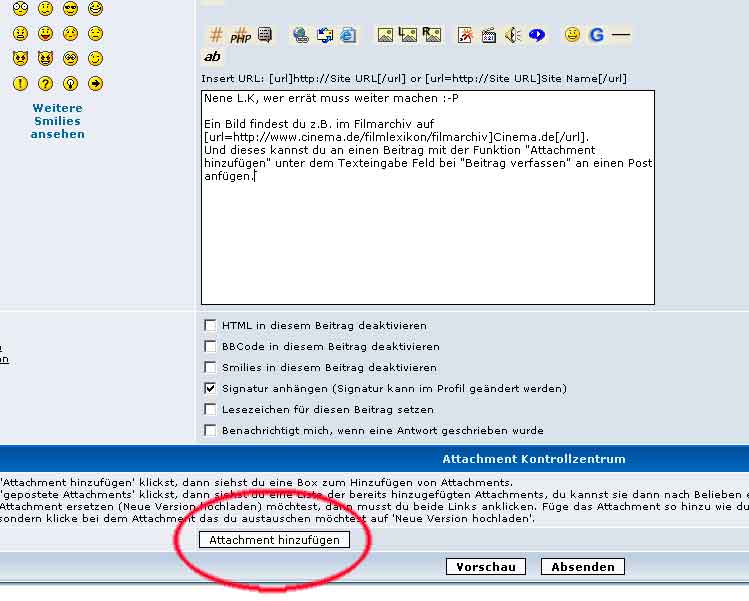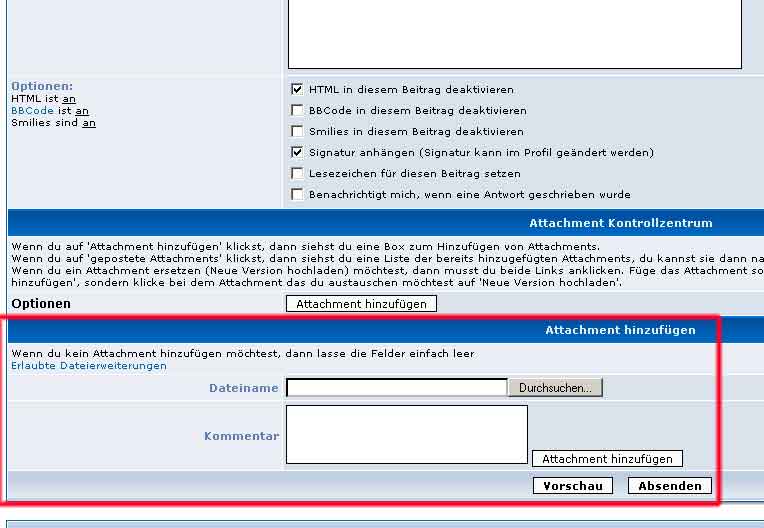 Einfach auf "Durchsuchen" klicken und dort das auf dem PC gespeicherte Bild auswählen und dann auf "Attachment Hinzufügen" klicken.