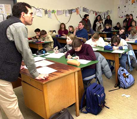 Der Lehrer vermittelt auch irgendwas und kommuniziert mit den Schülern...