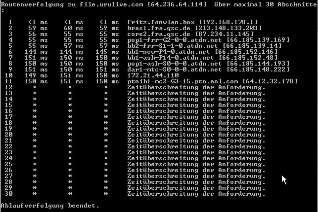 (traceroute liefert bei mir übrigens ebenfalls ab Pos.13 keine Antwort mehr, sobald es über "ptnih2-mc3-G2-15.ptn.aol.com [64.12.32.130]" geht.)