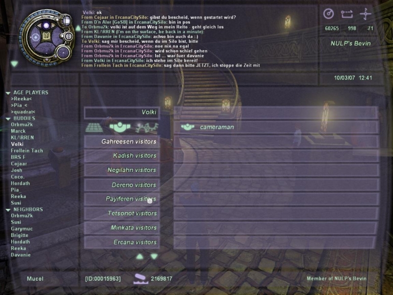 • merken, in wessen Er'cana-Silo man selber steht (Vorgänger)