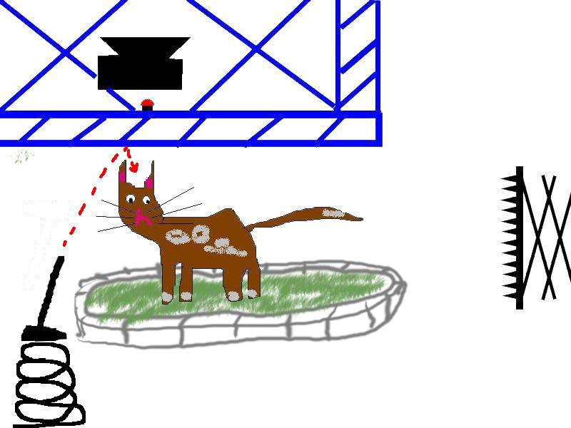 3. Daraufhin ist das nächste Ziel die Katze zu retten (Schmieren im Bild von 2). Dazu könnte jemand einen Blitzableiter dazumalen