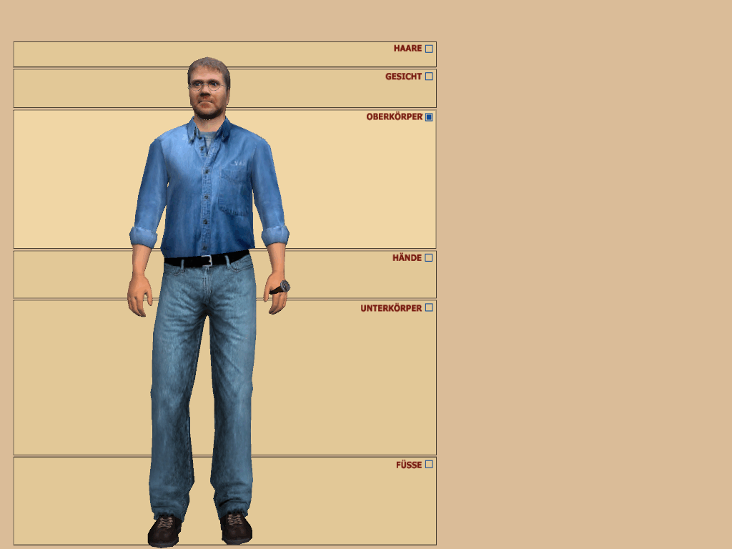 Okay, zufällig habe ich im Cobbs-Forum eine Möglichkeit gefunden, wie man den Charakter jenseits von männlich und weiblich ändern kann und es gleich ausprobiert. Zufällig gibt es auch einen Charakter RandMiller, von dem ich, um für die oben genannte Diskussion eine Grundlage zu bieten, ein Foto gemacht habe.