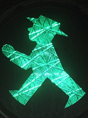 02) ein grünes Ampelmännchen mit Hut, was in dieser Form m.E. nur in bestimmten Städten oder gar Teilen Deutschlands vorkommt? Bei uns im Pott sehen die jedenfalls anders aus...