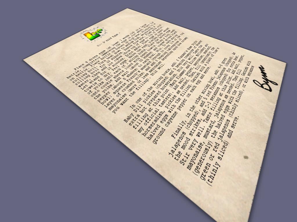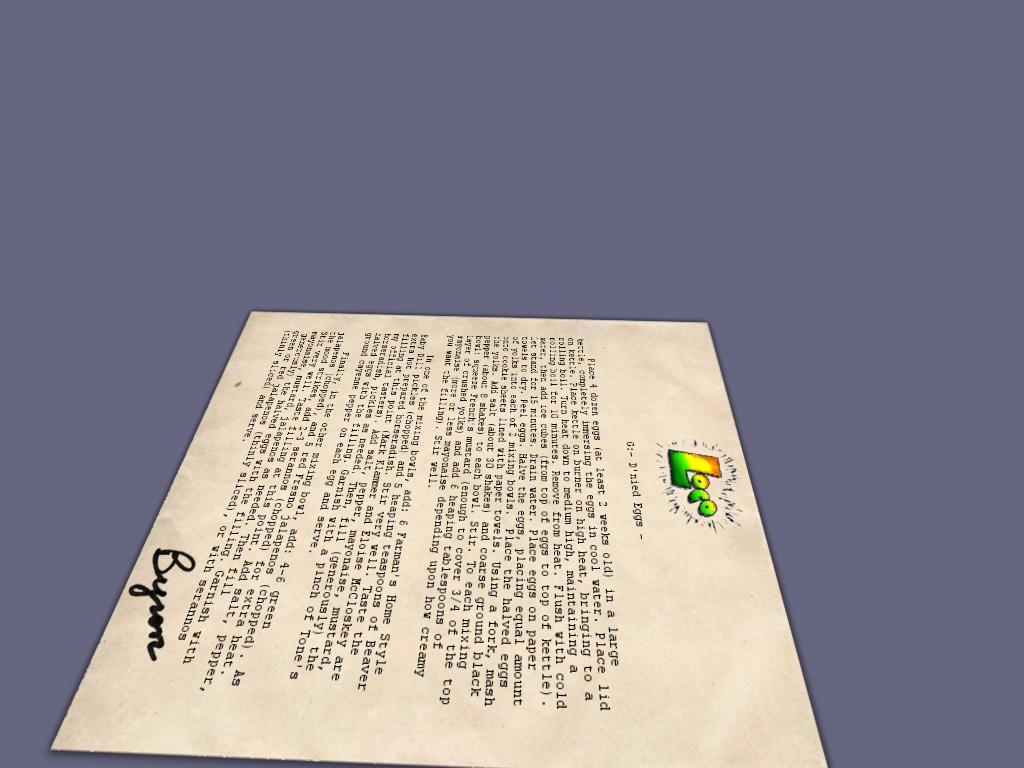 Wenn du in den Kamin den Code aus Myst eingibst, erscheint dieses D´ni-Rezept anstelle des Linkbuches.