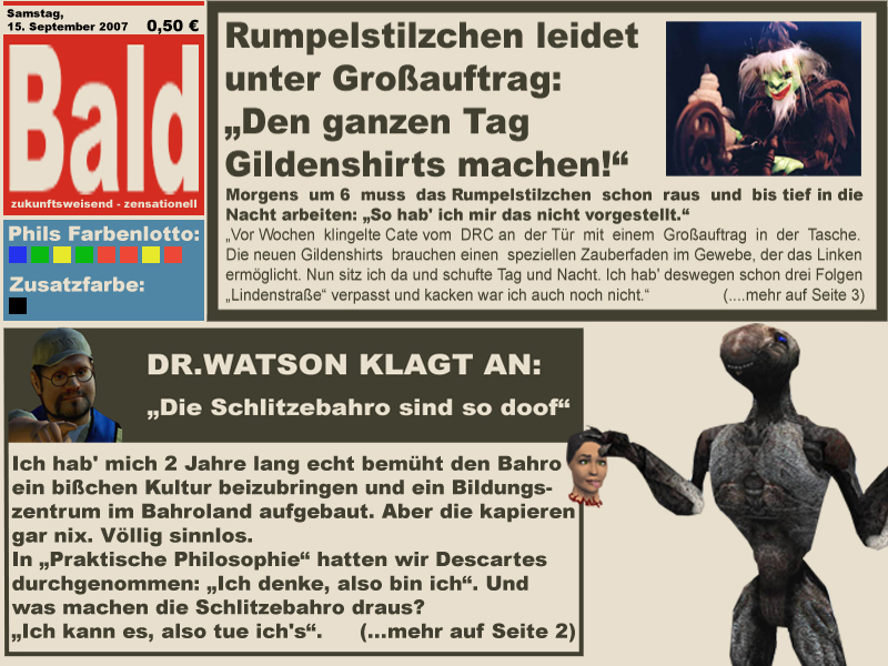 Während ich beim Brötchenholen heute morgen noch über Hamstas Theorie der RFID-Chips in den Gildenshirts nachdenke, fällt mein Blick auf den Zeitungskasten an der Straße.