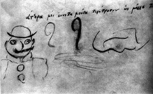 b4 und b4a sind Anspielungen auf den irischen Schriftsteller James Joyce, der mit dem Roman "Ulysses" einen modernen Odysseus schuf. Das erste Bild heißt "Symbol of Joyce" von Constantin Brancusi; das zweite ist eine Zeichnung, die Joyce von Leopold Bloom gemacht hat, dessen Odyssee durch Dublin im Buch geschildert wird.