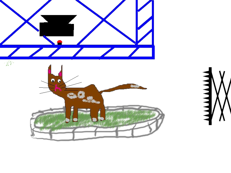 3. Daraufhin ist das nächste Ziel die Katze zu retten (Schmieren im Bild von 2). Dazu könnte jemand einen Blitzableiter dazumalen